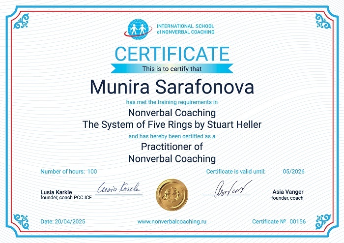 Практик Невербального коучинга Срок действия сертификата: май 2026