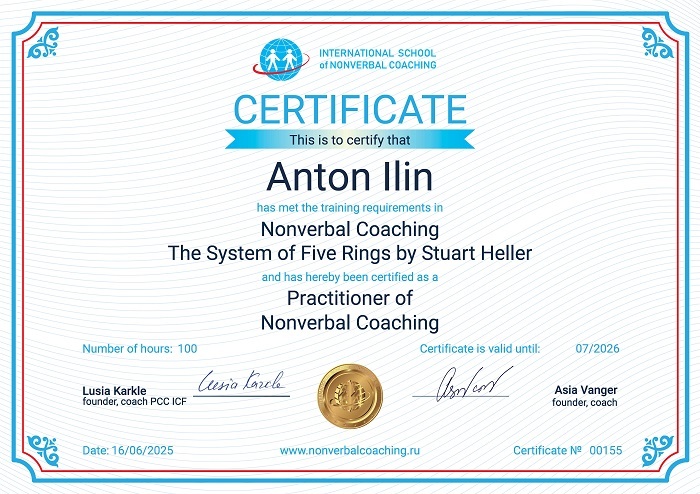 Практик Невербального коучинга Срок действия сертификата: июль 2026